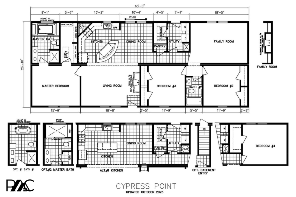 Stepping into the Cypress Point, you’re welcomed by a spacious and flexible floor plan designed to adapt to your lifestyle. Measuring 68’0″ x 26’10”, this home offers generous living areas with thoughtful options that allow you to personalize the space to your needs.