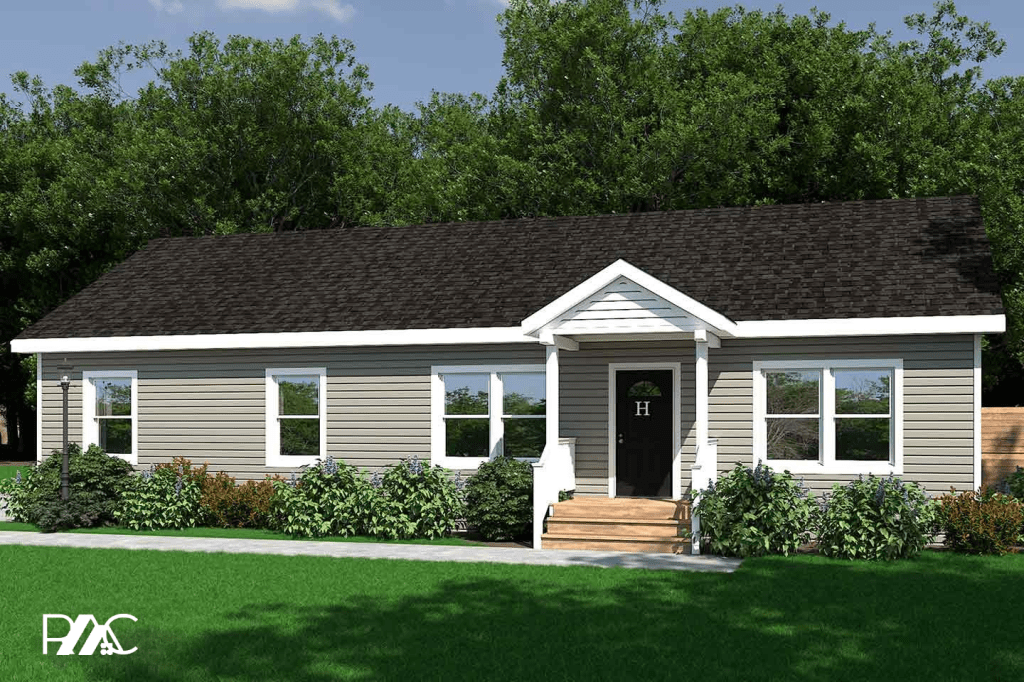 Large primary bathroom that includes a five-foot walk-in shower with built-in seat and glass door.h STANDARD 10/12 roof pitch, *Optional on-site built front porch with turn gable and dormers shown.